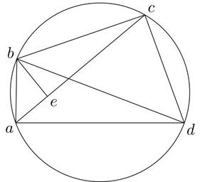 | Keywords: Coppernicus 006.svg de à ber die Kreisbewegungen der Weltkörper 6 File Kreisbewegungen-Coppernicus-0 djvu p 34 1879 w Nicolaus Copernicus File Coppernicus6 png PD-old-100 De revolutionibus drawings LaTeX Source Code <syntaxhighlight lang latex > complile with »pdflatex« \documentclasstikz convert pdf2svg standalone \usetikzlibrary calc intersections \begin document \begin tikzpicture \draw 0 0 circleradius 2; \coordinate A at 200 2 ; \coordinate B at 158 2 ; \coordinate C at 60 2 ; \coordinate D at -20 2 ; \path B ; \pgfgetlastxy \xB \yB \path C ; \pgfgetlastxy \xC \yC \path D ; \pgfgetlastxy \xD \yD \pgfmathanglebetweenlines \pgfpoint \xB \yB \pgfpoint \xD \yD \pgfpoint \xB \yB \pgfpoint \xC \yC \pgfmathsetmacro \angCBD \pgfmathresult ; \draw A -- B -- C -- D --cycle; \draw B -- D ; \pathdraw name path lineAC A -- C ; \pathname path lineBE B -- B 1 \angCBD A ; \pathname intersections of lineAC and lineBE name section ; \coordinate E at section-1 ; \draw B -- E ; \draw A + -135 0 2 node a ; \draw B + 135 0 2 node b ; \draw C + 45 0 2 node c ; \draw D + -45 0 2 node d ; \draw E + -45 0 2 node e ; \end tikzpicture \end document </syntaxhighlight> |