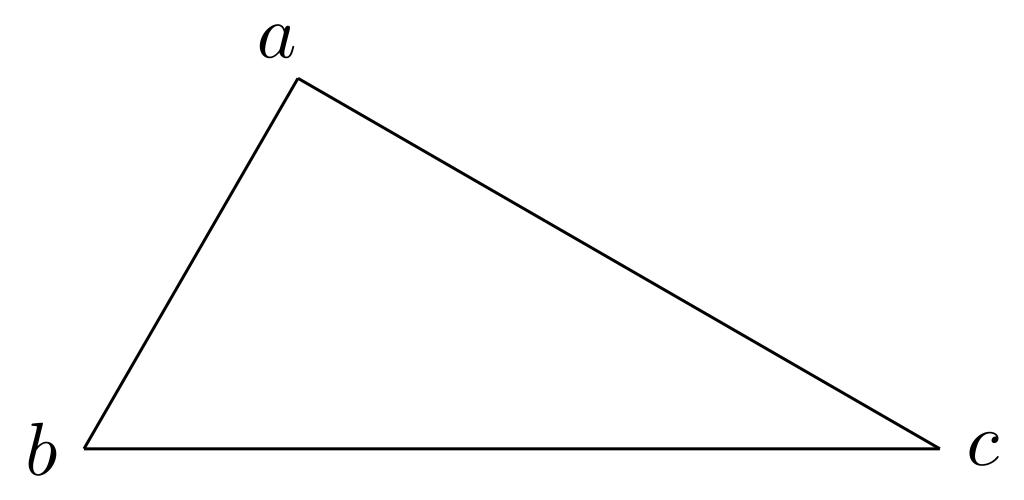 | Keywords: Coppernicus 014.svg de à ber die Kreisbewegungen der Weltkörper 14 File Kreisbewegungen-Coppernicus-0 djvu p 43 1879 w Nicolaus Copernicus File Coppernicus_014 png PD-old-100 De revolutionibus drawings LaTeX Source Code <syntaxhighlight lang latex > complile with »pdflatex« \documentclasstikz convert pdf2svg standalone \begin document \begin tikzpicture \coordinate A at 120 2 ; \coordinate B at 180 2 ; \coordinate C at 0 2 ; \draw A -- B ; \draw A -- C ; \draw B -- C ; \draw A + 120 0 2 node a ; \draw B + 180 0 2 node b ; \draw C + 0 0 2 node c ; \end tikzpicture \end document </syntaxhighlight> |