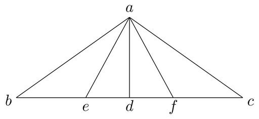 | Keywords: Coppernicus 088.svg de à ber die Kreisbewegungen der Weltkörper 88 File Kreisbewegungen-Coppernicus-0 djvu p 251 1879 w Nicolaus Copernicus File Coppernicus_088 png PD-old-100 De revolutionibus drawings LaTeX Source Code <syntaxhighlight lang latex > complile with »pdflatex« \documentclasstikz convert pdf2svg standalone \begin document \begin tikzpicture \pgfmathsetmacro \DB 2 59 ; \pgfmathsetmacro \DE 1 ; \coordinate A at 0 1 83 ; \coordinate B at -\DB 0 ; \coordinate C at \DB 0 ; \coordinate D at 0 0 ; \coordinate E at -\DE 0 ; \coordinate F at \DE 0 ; \draw A -- B ; \draw A -- C ; \draw A -- D ; \draw A -- E ; \draw A -- F ; \draw B -- C ; \draw A + 90 0 2 node a ; \draw B + -135 0 25 nodeanchor base b ; \draw C + -45 0 25 nodeanchor base c ; \draw D + -90 0 3 nodeanchor base d ; \draw E + -90 0 3 nodeanchor base e ; \draw F + -90 0 3 nodeanchor base f ; \end tikzpicture \end document </syntaxhighlight> |
