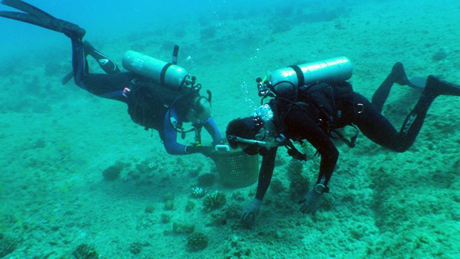 Keywords: coral coral reef coralreef underwater diver scientist ocean coral restoration coralrestoration office of response and restoration officeofresponseandrestoration noaa nos national ocean service nationaloceanservice hawaii hawaii coral hawaiicoral m/v vogetrader mvvogetrader water swim sport Two divers unload a basket full of loose corals into a safe holding area so that they can be returned after the rubble from the grounding site is removed, minimizing further impacts. Background: Emergency coral restoration is underway just outside the entrance to Hawaii’s Kalaeloa Harbor. NOAA and partners are working with the owners of the cargo vessel M/V VogeTrader to repair corals that were injured when the vessel accidentally lodged itself onto the reef one morning in 2010. (Original source and more information: NOAA Office of Response and Restoration Website) Two divers unload a basket full of loose corals into a safe holding area so that they can be returned after the rubble from the grounding site is removed, minimizing further impacts. Background: Emergency coral restoration is underway just outside the entrance to Hawaii’s Kalaeloa Harbor. NOAA and partners are working with the owners of the cargo vessel M/V VogeTrader to repair corals that were injured when the vessel accidentally lodged itself onto the reef one morning in 2010. (Original source and more information: NOAA Office of Response and Restoration Website) |