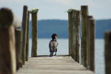 Keywords: cormorant boardwalk lake web nature water bird jetty waters pier water seevogel bank