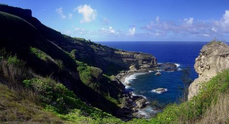 Keywords: saipan sky clouds sea ocean water shoreline waves mountains landscape valley ravine plants grass trees nature outside Bird Island