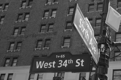 Keywords: corner crossroads plate street new york street sign
