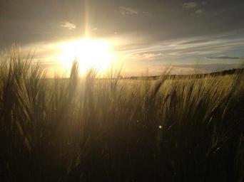 Keywords: cornfield cereals sun sunset field evening clouds cloudiness wheat field wheat rye