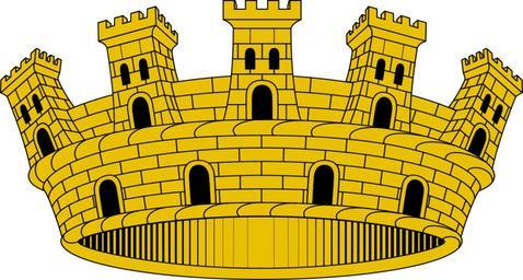 | Keywords: Corona mural - villa.svg Corona mural de Villa Lienzo de muralla con ocho puertas cuatro visibles realzado de ocho torres almenadas cinco visibles unidas hasta la mitad de su altura por un muro sin almenas http //www scgenealogia org/heraldica/heraldcivic htm Introducción general de heráldica cívica Own 2007-12-10 HansenBCN 40px SVG coat of arms elements - mural crowns |