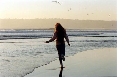 Keywords: coronado beach long haired woman running dusk