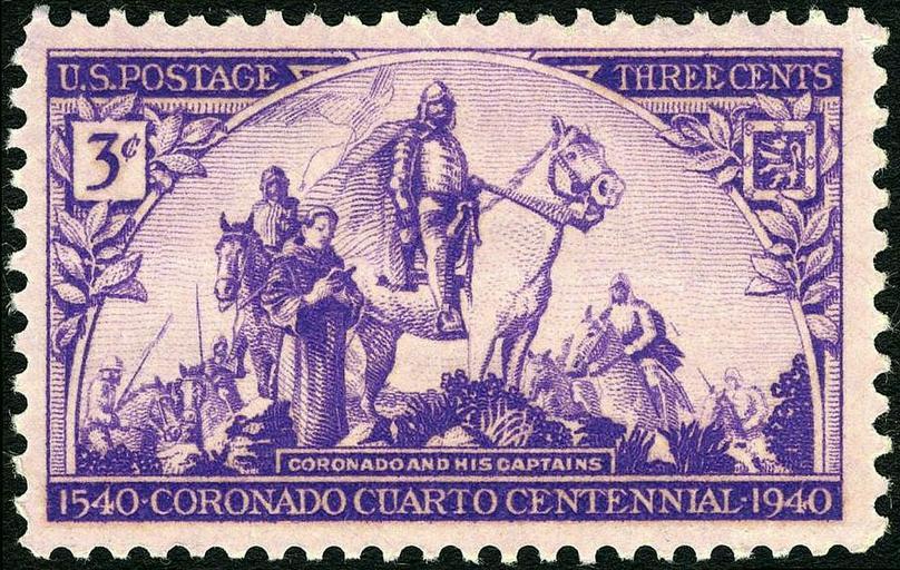 | Keywords: Coronado Expedition 1940 U.S. stamp.1.jpg en Coronado ™s expeditions of exploration through the southwestern states in search of riches were celebrated on a 3-cent stamp issued September 7 1940 on the 400th anniversary He extended northeast as far as Kansas learning about the Indians and the regional topography 2014-03-14 15 07 21 Arago people postage the post Bureau of Engraving and Printing PD-USGov Uploaded with UploadWizard U S territories on stamps History of the United States on stamps 1940 stamps of the United States Horses on stamps Animals on stamps of the United States |