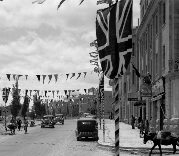 | Keywords: Coronation King George VI. Decorations. Day scenes King David, Barclay's Bank, Julian Way, Fast Hotel, May 12, 1937. matpc.22267 (cropped).jpg  Jerusalem en Coronation King George VI Decorations Day scenes King David Barclay's Bank Julian Way Fast Hotel May 12 1937 in 5 7 html Information field Notes Title and date from photographer's logbook Matson Registers v 1 1934-1939 Gift; Episcopal Home; 1978 html LOC-image matpc 22267 American Colony Jerusalem Photo Dept photographer 1937-05-12 Coronation King George VI Decorations Day scenes King David Barclay's Bank Julian Way Fast Hotel May 12 1937 matpc 22267 jpg PD-Matson King David Street 1937 in Jerusalem Nitrate negatives Taken with Stokes 75 |