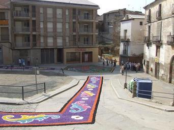| Keywords: Corpus Christi flower carpet in Tamarite 2006-050.jpg Corpus Christi celebration on Tamarite de Litera Year 2006 Square of the old wine shop and its four confluent streets with carpets A balcony has the flag of Aragon Corpus Christi en Tamarite de Litera Año 2006 Plaza del Mesón y sus cuatro calles confluentes con alfombras Un balcón tiene la bandera de Aragón Own Enric Naval Corpus Christi in Tamarite de Litera | ||||