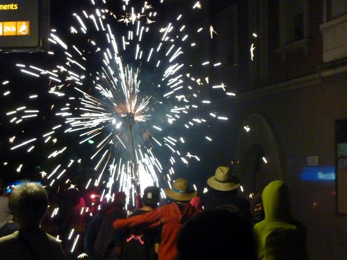 | Keywords: Correfocs (literally in English "fire-runs") are among the most striking features present in Catalan festivals. In the correfoc, a group of individuals will dress as devils and light fireworks - fixed on devil's pitchforks or strung above the route. Dancing to the sound of a rhythmic drum group, they set off their fireworks among crowds of spectators. The spectators that participate dress to protect themselves against small burns and attempt to get as close as possible to the devils... running with the fire. Other spectators will watch from 'safe' distances, rapidly retreating as necessary. culture catalan correfoc terrassa països catalans fmterrassa2016 |