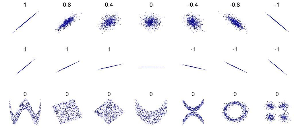 | Keywords: Correlation examples2.svg en redesign File Correlation_examples png using vector graphics SVG file own original uploader was Imagecreator DenisBoigelot original uploader was Imagecreator 2011-05-09 Released into the public domain by the authors CovrarianceCorrelation svg File Correlation_examples png <pre> Title An example of the correlation of x and y for various distributions of x y pairs Tags Mathematics; Statistics; Correlation Author Denis Boigelot Packets needed mvtnorm rmvnorm RSVGTipsDevice devSVGTips How to use output This is an translated version in R of an Matematica 6 code by Imagecreator library mvtnorm library RSVGTipsDevice MyPlot <- function xy xlim c -4 4 ylim c -4 4 eps 1e-15 title round cor xy 1 xy 2 1 if sd xy 2 < eps title corr coeff is undefined plot xy main title xlab ylab col darkblue pch 16 cex 0 2 xaxt n yaxt n bty n xlim xlim ylim ylim MvNormal <- function n 1000 cor 0 8 for i in cor sd matrix c 1 i i 1 ncol 2 x rmvnorm n c 0 0 sd MyPlot x rotation <- function t X return X matrix c cos t sin t -sin t cos t ncol 2 RotNormal <- function n 1000 t pi/2 sd matrix c 1 1 1 1 ncol 2 x rmvnorm n c 0 0 sd for i in t MyPlot rotation i x Others <- function n 1000 x runif n -1 1 y 4 x 2 - 1/2 2 + runif n -1 1 /3 MyPlot cbind x y xlim c -1 1 ylim c -1/3 1+1/3 y runif n -1 1 xy rotation -pi/8 cbind x y lim sqrt 2+sqrt 2 / sqrt 2 MyPlot xy xlim c -lim lim ylim c -lim lim xy rotation -pi/8 xy MyPlot xy xlim c -sqrt 2 sqrt 2 ylim c -sqrt 2 sqrt 2 y 2 x 2 + runif n -1 1 MyPlot cbind x y xlim c -1 1 ylim c -1 3 y x 2 + runif n 0 1/2 sample seq -1 1 2 n replace TRUE MyPlot cbind x y xlim c -1 5 1 5 ylim c -1 5 1 5 y cos x pi + rnorm n 0 1/8 x sin x pi + rnorm n 0 1/8 MyPlot cbind x y xlim c -1 5 1 5 ylim c -1 5 1 5 xy1 rmvnorm n/4 c 3 3 xy2 rmvnorm n/4 c -3 3 xy3 rmvnorm n/4 c -3 -3 xy4 rmvnorm n/4 c 3 -3 MyPlot rbind xy1 xy2 xy3 xy4 xlim c -3-4 3+4 ylim c -3-4 3+4 output <- function devSVGTips width 7 height 3 2 remove first and last line for no svg exporting par mfrow c 3 7 oma c 0 0 0 0 mar c 2 2 2 0 MvNormal 800 c 1 0 0 8 0 4 0 0 -0 4 -0 8 -1 0 ; RotNormal 200 c 0 pi/12 pi/6 pi/4 pi/2-pi/6 pi/2-pi/12 pi/2 ; Others 800 dev off remove first and last line for no svg exporting </pre> Cc-zero Correlation |
