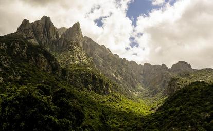Keywords: corsican nature mountains mountain landscape landscape forest rock france clouds sunbeam summer