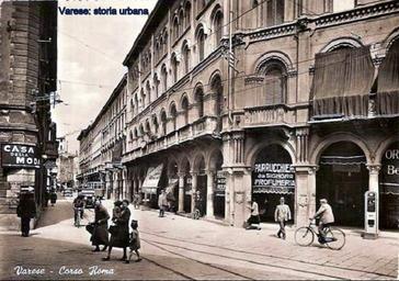 Keywords: Vista di corso Roma: sul fondo si intravede la piazza Porcari. A destra la cortina di edifici progettati dall'ing. Paolo Cantù (1889). tram varese corsoroma corsoaldomoro