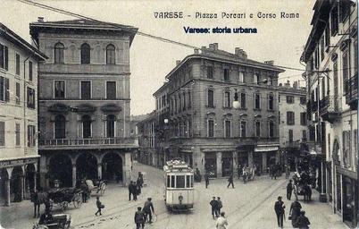 | Keywords: varese tram piazza porcari piazzaporcari corso roma corsoroma corso aldo moro corsoaldomoro piazza monte grappa piazzamontegrappa architecture building road outdoor Corso Roma visto da Piazza Porcari (ora Monte Grappa). Sulla sinistra casa Romanò (abbattuta nel 1960). A destra l'imbocco di via Pozzovaghetto (ora via Volta). All'estrema destra, di scorcio, casa Carantani già casa Porcari (rimodernata nel 1809 dall'arch. Lorenzo Zuccotti) Corso Roma visto da Piazza Porcari (ora Monte Grappa). Sulla sinistra casa Romanò (abbattuta nel 1960). A destra l'imbocco di via Pozzovaghetto (ora via Volta). All'estrema destra, di scorcio, casa Carantani già casa Porcari (rimodernata nel 1809 dall'arch. Lorenzo Zuccotti) |