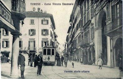 Keywords: Corso Vittorio Emanuele II all'altezza di piazza del Podestà (aperta nel 1583-87), a destra l'Arco Mera (1850). tram varese corsovittorioemanueleii corsogiacomomatteotti
