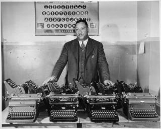 | Keywords: "Cortez W. Peters, World's Champion Portable Typist, is shown with ten late model standard-size typewriters which he tur - NARA - 535804.tif Local identifier 208-NP-1V-1 Office for Emergency Management Office of War Information Domestic Operations Branch News Bureau 06/13/1942 - 09/15/1945 Still Picture Records Section Special Media Archives Services Division NWCS-S National Archives at College Park 8601 Adelphi Road College Park MD 20740-6001 11/1942 Record group Record Group 208 Records of the Office of War Information 1926 - 1951 Record group ARC 535 Negro Activities in Industry Government and the Armed Forces compiled 1941 - 1945 Series ARC 535799 Variant control numbers NAIL Control Number NWDNS-208-NP-1V-1<br /> Select List Identifier AFRO/AM LIST 246 General notes Scope and content File unit File unit ARC yes <gallery> File Cortez_W _Peters _World's_Champion_Portable_Typist _is_shown_with_ten_late_model_standard-size_typewriters_which_he_tur_-_NARA_-_535804 tif tif File Cortez_W _Peters _World's_Champion_Portable_Typist _is_shown_with_ten_late_model_standard-size_typewriters_which_he_tur_-_NARA_-_535804 jpg jpg </gallery> NARA-cooperation PD-USGov QWERTY keyboard layouts Royal typewriters NARA TIF images with categorized JPGs |