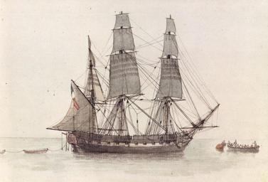 Keywords: Corvette-Antoine Roux-p39.jpg French 20-gun corvette ship unidentified 1806 Jean Meissonnier Voiliers de l'Époque romantique Edita Lausanne 1991 ISBN 2-88001-273-2 p 39 1806 Creator Antoine Roux PD-art-100 Antoine Roux