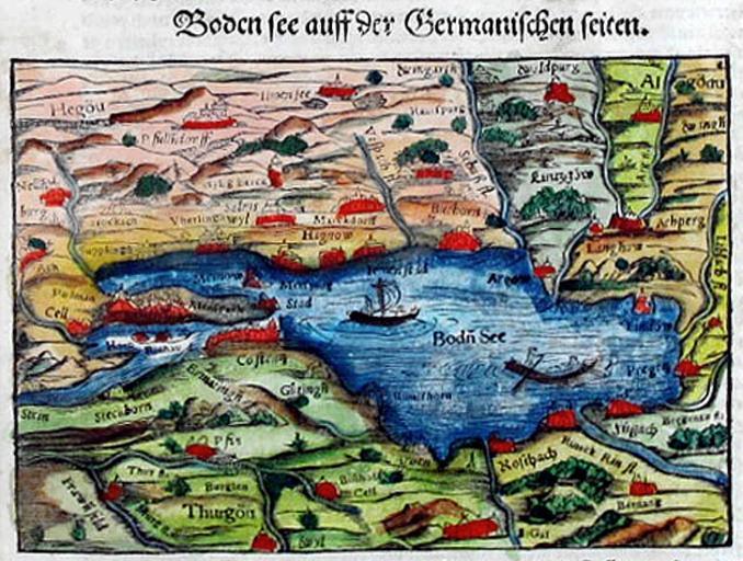 | Keywords: Cosmographia Bodensee koloriert.jpg Bodensee auff der Germanischen Seiten kolorierter Holzschnitt aus der Cosmographia von Sebastian Münster Ende 16 Jh http //www zeller de/ zeller de century 16 author PD-old Images from Auktionshaus Zeller Old maps of Lake Constance Cosmographia |