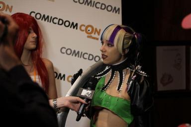 | Keywords: Cosplay at Comicdom 2012 in Athens, Greece 14.JPG en A cosplayer identified as Sofia Lucifairy wearing a self-made costume representing the Tira character from Soulcalibur V grants an interview to journalists from the MTV television channel and also poses for other the photojournalists' cameras at Comicdom 2012 an annual cosplay competition held at Hellenic American Union in Kolonaki Athens Greece Photo donated to the public domain free of copyright restrictions Journalistic use For Journalistic use 2012-03-31 18 14 35 own Cogiati cc-zero consent public place Canon EF 50mm f/2 5 Compact Macro Canon EOS 60D Interviews with cosplayers at Comicdom 2012 Cosplay of Tira Soulcalibur Green clothing female Taken with Canon EOS 60D Taken with Canon EF 50mm F2 5 Compact Macro |