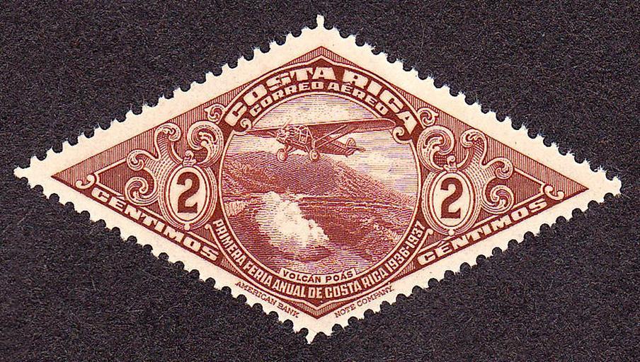 | Keywords: Costa Rica Diamond stamp2 1937-2c.jpg en Postage stamp Coasta Rica 1937 2c brown diamond shape stamp Costa Rica government Post Office / Gwillhickers Hi-res scan of Costa Rica postage stamp from private collection Costa Rica Post Office 1937 PD-old Stamps of Costa Rica 1937 stamps Airmail stamps Brown stamps |