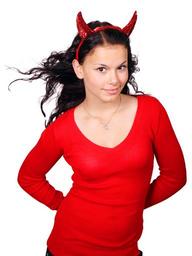 Keywords: costume demon devil face female girl halloween hell horn lovely pretty red smiling white woman women young
