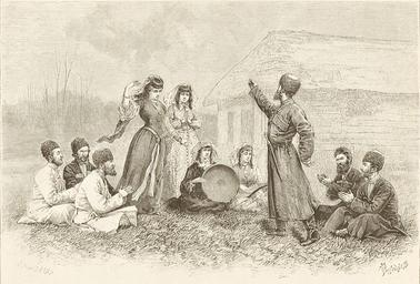 | Keywords: Costume of Georgian dancers (1881).jpg  Artwork Creator Illarion Pryanishnikov Information field Engraver Hildibrand html en Costume of Georgian dancers Original wood engraving drawn by Pranishnikoff engraved by Hildibrand Hand watercolored 1881 The work also describes one of the Georgian dance traditions when a gentleman invites a lady to dance with him ru Г авю а по  исунку  усского художника члена Това ищества Пе едвижных выставок Илла иона  ихайловича П янишникова 1840-1894 1881 watercolor wood cm 18 5 27 object history exhibition history credit line accession number http //rarita ru/catalog/gruzinskie-tantsory-obychai-i-kostyumy_3859 html rarita ru Information field Source of 1st version http //www french-engravings com/product_info php products_id 17979 language en french-engravings com html Uploaded with UploadWizard Georgian dance Georgians in art Illarion Pryanishnikov Henri Theophile Hildibrand PD-Art-100 |