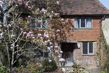 Keywords: cottage old brickwork tile hanging oak door leaded-light windows magnolia tree rural architecture rustic exterior masonry england sissinghurst kent