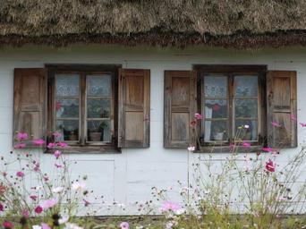 Keywords: cottage village thatched roof the window poland village shutters