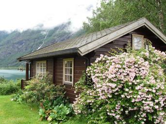 Keywords: cottage waterfall lake landscape outdoors rural green cabin house norway flowers exterior home summer country rustic vacation
