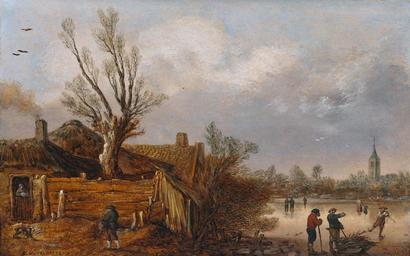 | Keywords: Cottages and frozen river, by Esaias van de Velde.jpg en Cottages and frozen river oil on paper mounted on wood 21 27 x 33 66 cm signed b l E V VELDE 1629 1629 http //collections lacma org/node/212324 LACMA Creator Esaias van de Velde PD-old-100 Uploaded with UploadWizard Esaias van de Velde 1629 Oil on paper |