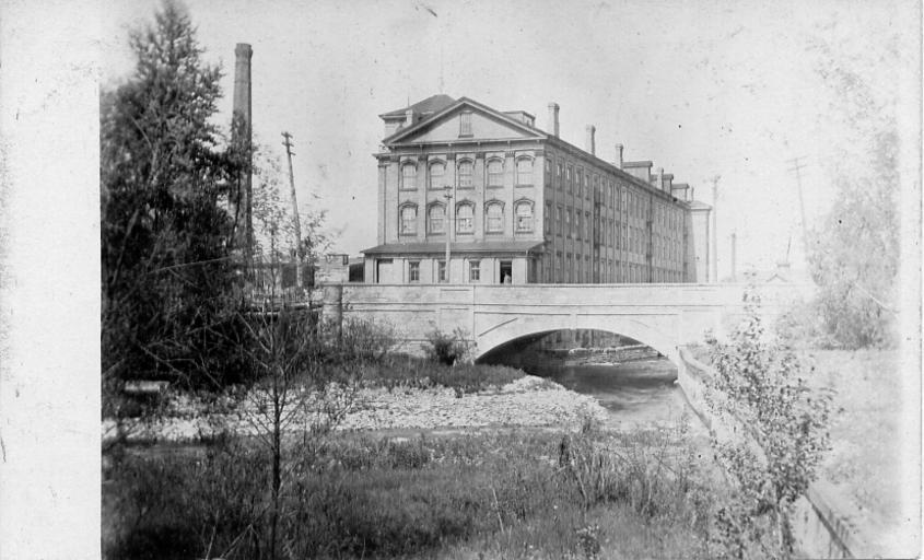| Keywords: blackandwhite monochrome outdoor black and white Postcard of looking upstream at factory, bridge over creek in foreground.  508x307  Black&White  Publisher: VELOX Postcard of looking upstream at factory, bridge over creek in foreground.  508x307  Black&White  Publisher: VELOX  |