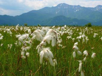 Keywords: cottongrass bog meadow blossom bloom white nature mountains