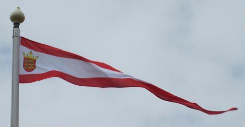 Keywords: Couleu d'Jèrri en trian.jpg Couleu d'Jèrri self-photographed 1 d'Mai 2010 Man vyi Own work all rights released Public domain Photographs of flags of Jersey 2010 in Jersey Red white yellow flags