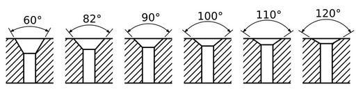 Keywords: Countersunk holes.svg countersunk holes with various chamfer angles Own Inductiveload 2008-12-22 Trous fraises avec axe svg Countersinks SVG machinery