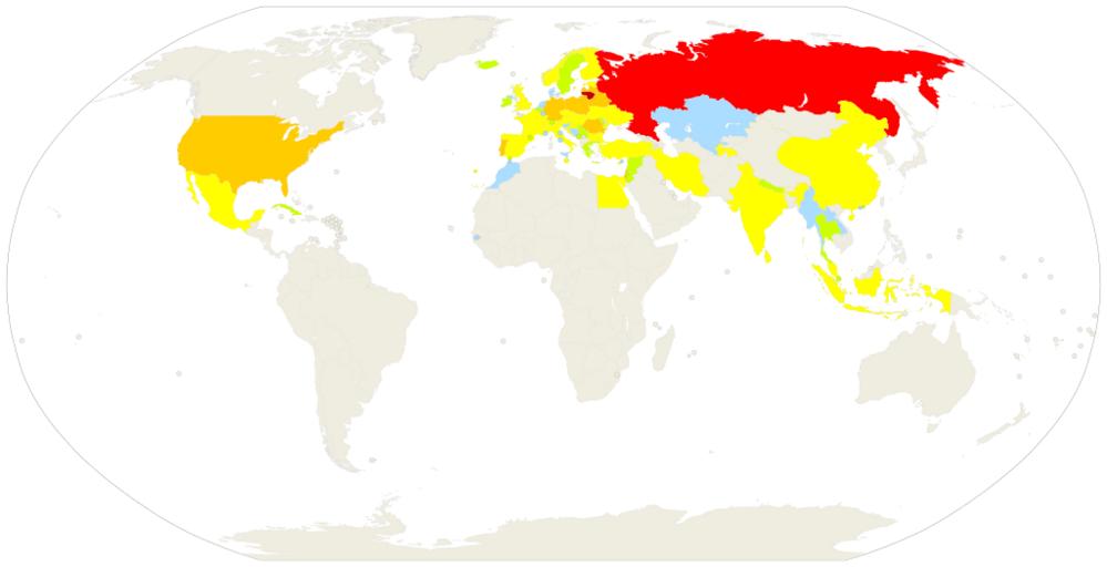 | Keywords: Countries visited by JohnnyWiki (map).svg JohnnyWiki legend cc0000 Stayed here for 10 years or more ff0000 Stayed here for 1 year or more ffcc00 Stayed here for 1 month or more ffff00 Stayed here for 1 week or more ccff00 Stayed here for 1 day or more aaddff Stayed here for less than 24 hours efece0 Not yet visited incl transit territories with no sightseeing <br><br> JohnnyWiki legend cc0000 Čia buvau 10 metų ar ilgiau ff0000 Čia buvau 1 metus ar ilgiau ffcc00 Čia buvau 1 mėnesį ar ilgiau ffff00 Čia buvau 1 savaitę ar ilgiau ccff00 Čia buvau 1 dieną ar ilgiau aaddff Čia buvau trumpiau nei 24 valandas efece0 Čia dar nebuvau jei ir pravažiavau tai nebuvau išlipęs ir nieko neapžiūrėjau <br><br> JohnnyWiki legend cc0000 Ĉi tie mi estis 10 jarojn aŭ pli longe ff0000 Ĉi tie mi estis 1 jaron aŭ pli longe ffcc00 Ĉi tie mi estis 1 monaton aŭ pli longe ffff00 Ĉi tie mi estis 1 semajnon aŭ pli longe ccff00 Ĉi tie mi estis 1 tagon aŭ pli longe aaddff Ĉi tie mi estis malpli ol 24 horojn efece0 Ĉi tie mi ne jam estis inkluzive tranzit-teritoriojn sen vizitado de iu ajn objekto 2012-03-31 own based on File BlankMap-World6 svg by Canuckguy JohnnyWiki Maps showing countries visited by Wikipedians |