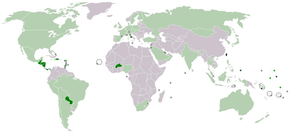 Keywords: CountriesRecognizingROC.png This is a map of countries recognizing the Republic of China Taiwan zh 中華民 對外 係 nan Tiong-huâ-bîn-kok tùi-guā kuan-hē-tôo Based on File BlankMap-World png <br> Transferred from http //en wikipedia org en wikipedia 2006-06-28 Original uploader was OCNative at http //en wikipedia org en wikipedia Later version s were uploaded by AnonyLog Yuriy Kolodin Andersmusician Hoshie Angelo De La Paz Jjhcap99 Reton Canadian Bobby Alinor Nightstallion at http //en wikipedia org en wikipedia 中華民 對外 係 例 legend black 中華民 控制 域 007f00 與中華民 外交 系的 家 00ff00 與中華民 外交 系但 設置大使館的 家 8fbc8f 不承認中華民 或與中華民 無外交 系但設置代表處的 家 grey 與中華民 無外交 系的 家 svg en wikipedia OCNative Original upload log page en wikipedia CountriesRecognizingROC png 2010-08-13 12 21 AnonyLog 1357×628× 48672 bytes reverting unexplained edit 2010-05-15 09 00 Yuriy Kolodin 1357×628× 47994 bytes Reverted to version as of 00 14 20 May 2009 2009-12-31 17 57 Andersmusician 1357×628× 48672 bytes update to specify states with diplomatic relations as the image caption on the article and the section itself suggests 2009-05-20 00 14 Hoshie 1357×628× 47994 bytes rm lines and thr hidious grey color; a few more geographic changes 2009-05-13 04 14 Hoshie 1357×628× 47796 bytes Added Kosovo as the ROC recogizes it; fixed boundries in the Middle East 2008-06-29 10 54 Angelo De La Paz 1357×628× 47774 bytes Changed color of Taiwan from black to red because 2 reasons mostly Chinese love red and the red could help we find where is Taiwan easier 2008-02-17 17 34 Jjhcap99 1357×628× 47747 bytes Added Saint Lucia and changed color of Saint Kitts and Nevis Saint Kitts and Nevis had opened Embassy in Taipei 2008-01-14 11 35 Reton 1357×628× 47738 bytes Removed the Republic of Malawi 2007-06-07 01 46 Canadian Bobby 1357×628× 47752 bytes Removed Costa Rica 2006-08-20 15 26 Alinor 1357×628× 47744 bytes correcting color 2006-08-20 15 24 Alinor 1357×628× 47723 bytes small states with circles - better visibility 2006-08-05 23 40 Nightstallion 1427×628× 48675 bytes well that much for Chad 2006-06-28 07 50 OCNative 1427×628× 48732 bytes This is a map of countries recognizing the Republic of China Taiwan Government of China Politics of Taiwan International relations of Taiwan Maps needing South Sudan political boundaries |