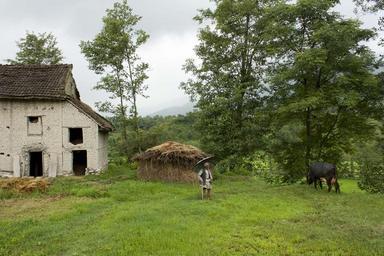 Keywords: country rural buffalo cowherd barn hut trees field grass pasture green nature people countryside scenery natural