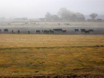 Keywords: country rural cattle field scenery farming scenic scene land outdoor agriculture farm grass countryside landscape grazing hazy cloudy beauty view eastern oregon ranch klamath falls