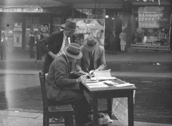 | View Original: | Country_voters_check_at_absentee_table,_17_Sept_1934,_by_Sam_Hood.jpg (1400x1027) | |||