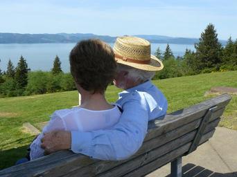 | Keywords: couple astoria oregon columbia river pacific northwest river forest view parents grandparents love affection happy romantic elderly landscape summer scenery picturesque country green blue peaceful tranquil outdoor relax park bench hat countryside calm rest bench man woman |