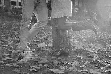 Keywords: couple love romance romantic autumn cowboy boots leaves black and white