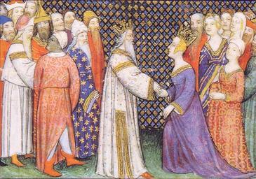 | Keywords: Couronnement de Pharamond Childéric et la reine Basine.jpg Le couronnement de Childéric et de la reine Basine Les chroniques de France dites les chroniques de Saint-Denis Musée Condé Chantilly Musée Condé de Chantilly <br> http //www bridgemanart com/image aspx key clovis filter CBPOIHV thumb x150 num 15 page 26 img 385fc0d3f01f4a0497c727dab6e2ef32 2008-11-07 Author PD-Art PD-old Childeric I Basine de Thuringe Chantilly Musée Condé manuscripts Bliaut Medieval European Jewish clothing Jewish hat |