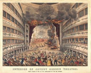 | Keywords: Covent Garden Theatre London fire.jpg Interior of Covent Garden Theatre at the first alarm of fire at the conclusion of the Bal Masque print hand-colored institution Victoria and Albert Museum S 14-2009 http //collections vam ac uk/item/O181635/print-h-beard-print-collection/ c 1856 E Pugh artist James Fittler engraver PD-old-100 Theatre Royal Covent Garden 1809 building Prints in the Victoria and Albert Museum Theatre collection of the Victoria and Albert Museum Interiors of theaters in art Burning buildings in art 1856 in London 1856 in theatre 1856 engravings Fires in London James Fittler |