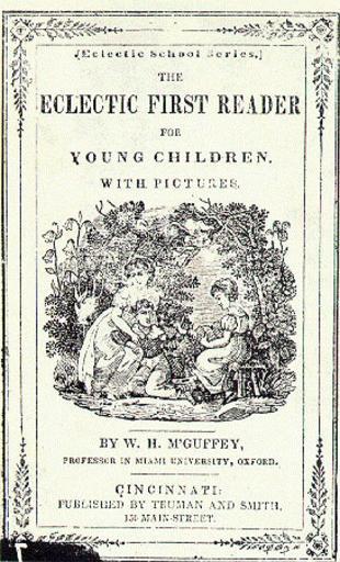 | Keywords: Cover of McGuffey's First Eclectic Reader.jpeg Cover of McGuffey's First Eclectic Reader by William Holmes McGuffey Truman and Smith Publishing 1841 Originally published McGuffey's First Eclectic Reader by William Holmes McGuffey 1841 Source site http //www lib muohio edu/my/pix/reader html Source URL http //www lib muohio edu/my/pix/reader GIF 1841 William Holmes McGuffey PD-old-100 Original upload log en wikipedia FtCG page en wikipedia Mreader jpeg wikitable Date/Time Dimensions User Comment - 00 41 20 June 2008 273 × 451 77 896 bytes AWeenieMan w en <nowiki> Higher resolution version of PD image </nowiki> - 02 21 12 December 2003 215 × 355 19 370 bytes Hephaestos w en <nowiki> Compressed jpeg of Image Mreader png </nowiki> Children's book covers from the United States McGuffey Readers |