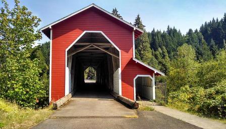 Keywords: covered bridge red rural outdoor oregon bridge covered wood landscape landmark wooden historic road scenic country architecture structure county historical outdoors span crossing vintage