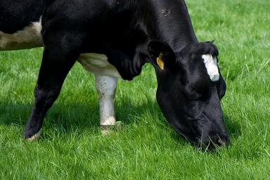 Keywords: cow animal cattle eating black green pasture graze isolated