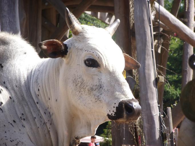 Keywords: cow animal zoo petting zoo germany enclosure horn closeups head face nose