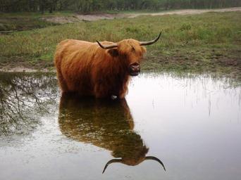Keywords: cow horns water mirror dunes nature landscape netherlands lake in the dunes