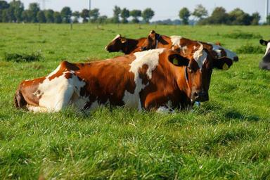 Keywords: cow pasture beef sky lying ruminate nature landscape green agriculture mammal animal red-colored perissodactyla creature