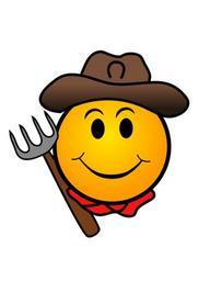 Keywords: cowboy farm farmer smiley trident dung fork muck-rake muckrake pitchfork